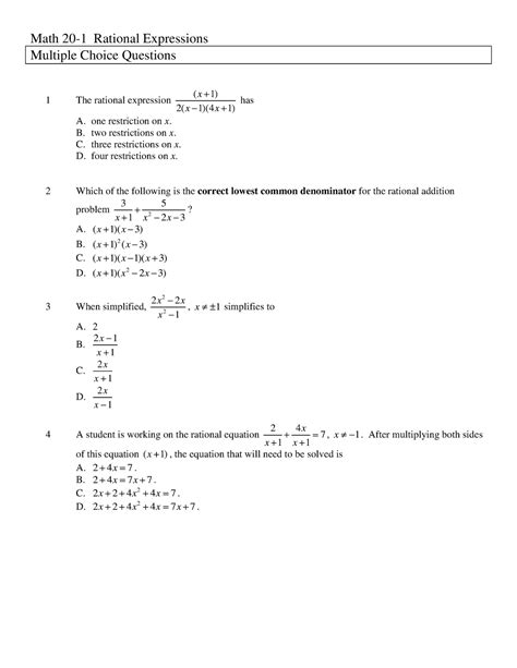 Download multiple choice rational expressions PDF